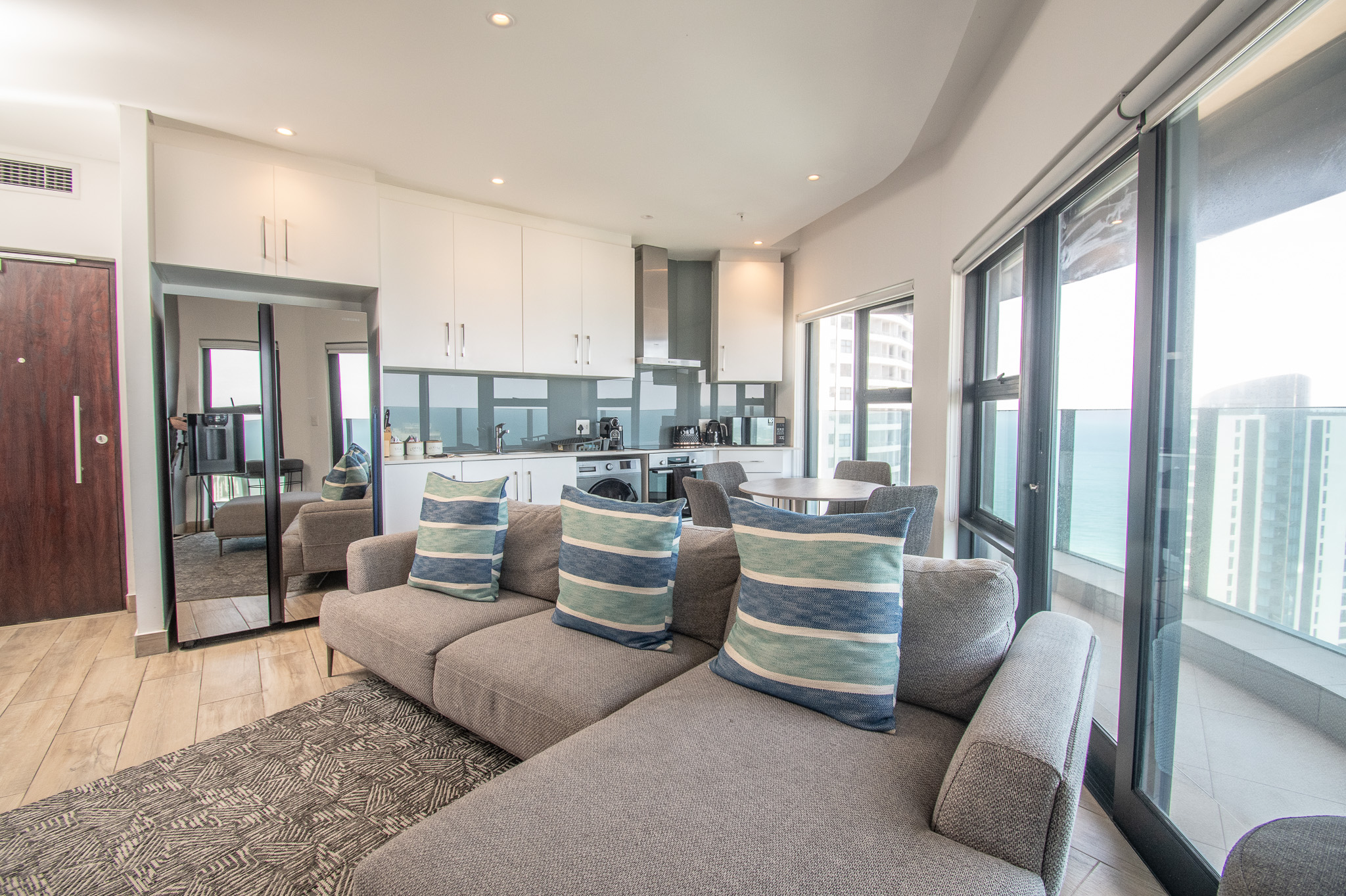 Designed with an eye for contemporary elegance, the apartment features a spacious open-plan lounge and dining area, perfect for unwinding after a day in the sun.